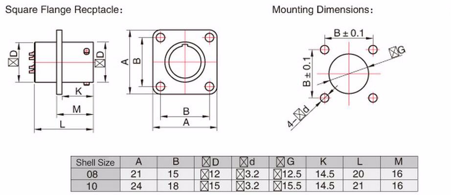 | Wall Mounting Square Flange Receptacle | 19/29 |
